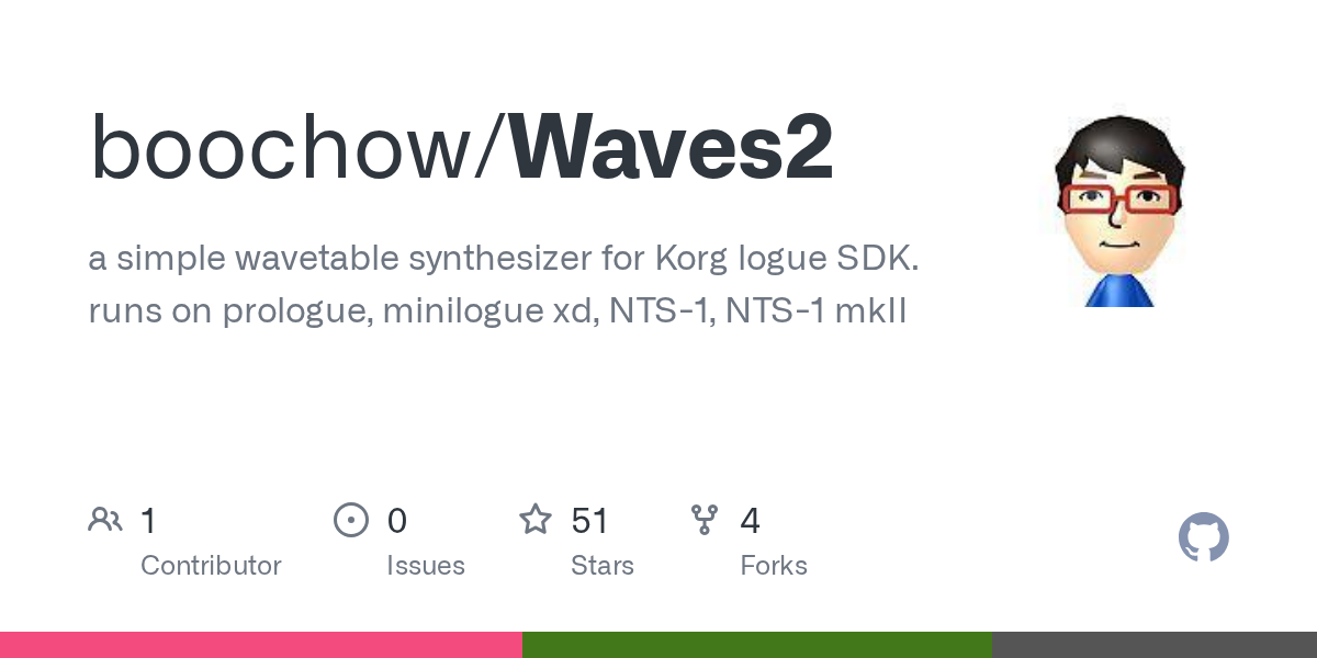 minilogue xdやNTS-1には、カスタムオシレータのサンプルとしてウエーブテーブルオシレータ「waves」が付属してきます。ソースコードも公開されています。このオシレータは、logue SDKに含まれるウエーブテーブルの90個の波形から、前半46個の中から1つ、後半44個の中から1つの波形を選び、2つのミックス(リングモジュレーションも可)の比率をShapeパラメータで調整しつつ、サブオシレータとして16個の波形から選んだ3つ目の波形もミックスできるようになっていました。